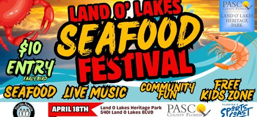 Get ready, seafood lovers! The 2nd Annual Land O’ Lakes Seafood Festival is making waves, bringing you the freshest seafood, live music, rum samples, and a day filled with community fun—all while supporting local charities!